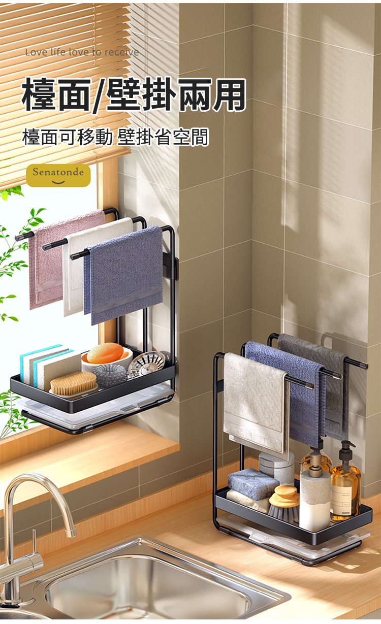 【檯面/壁掛兩用】廚房抹佈置物架