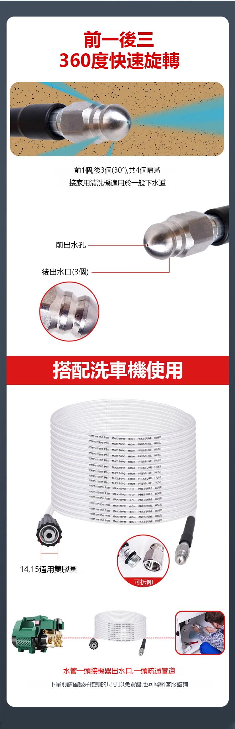 【一沖淨】水老鼠噴頭高壓管清洗疏通套裝